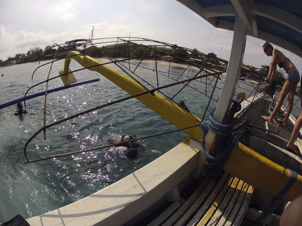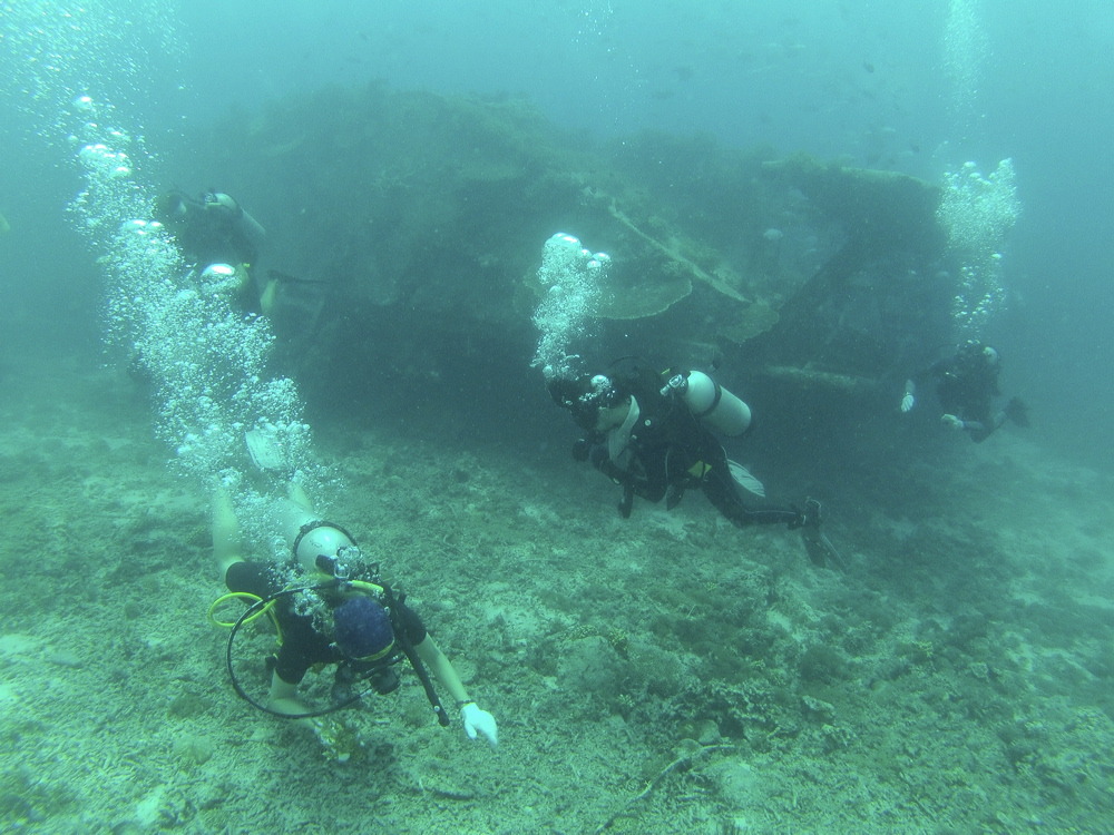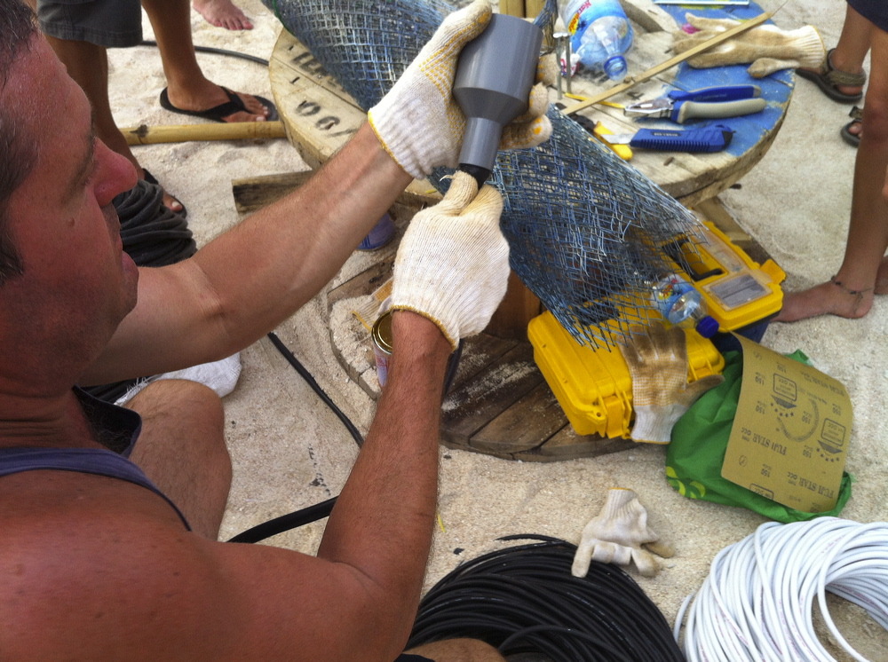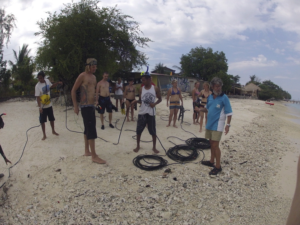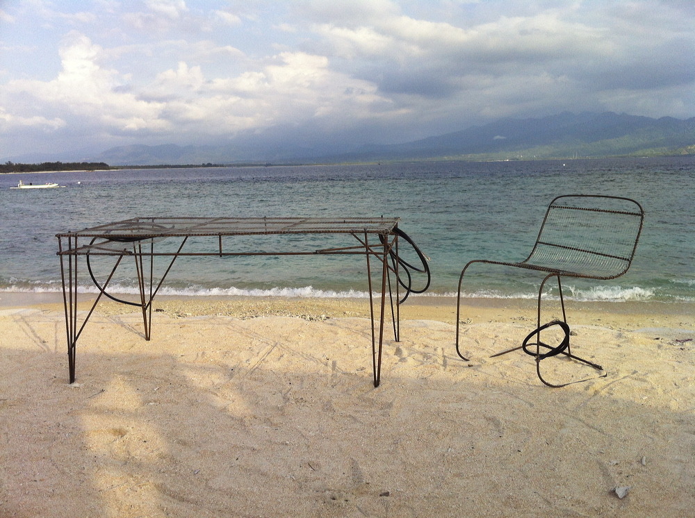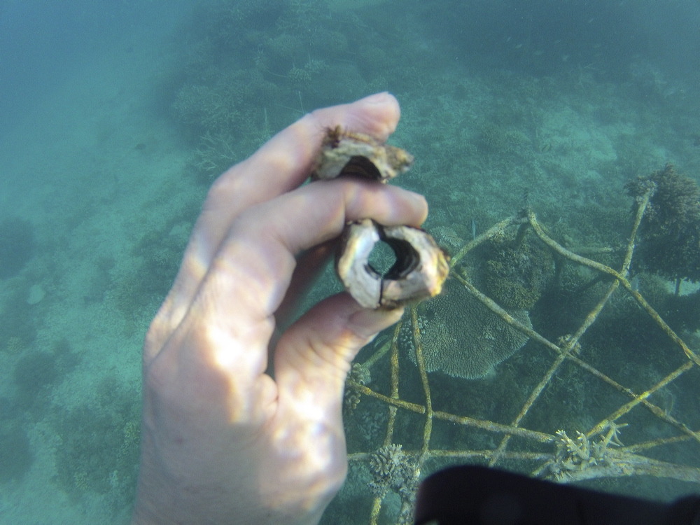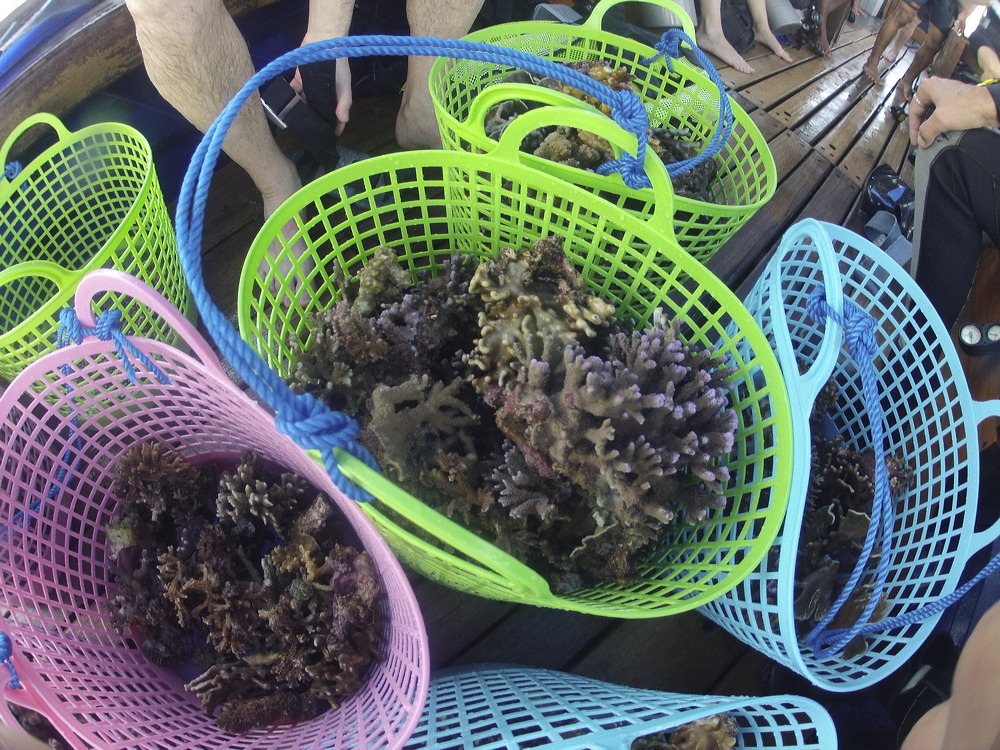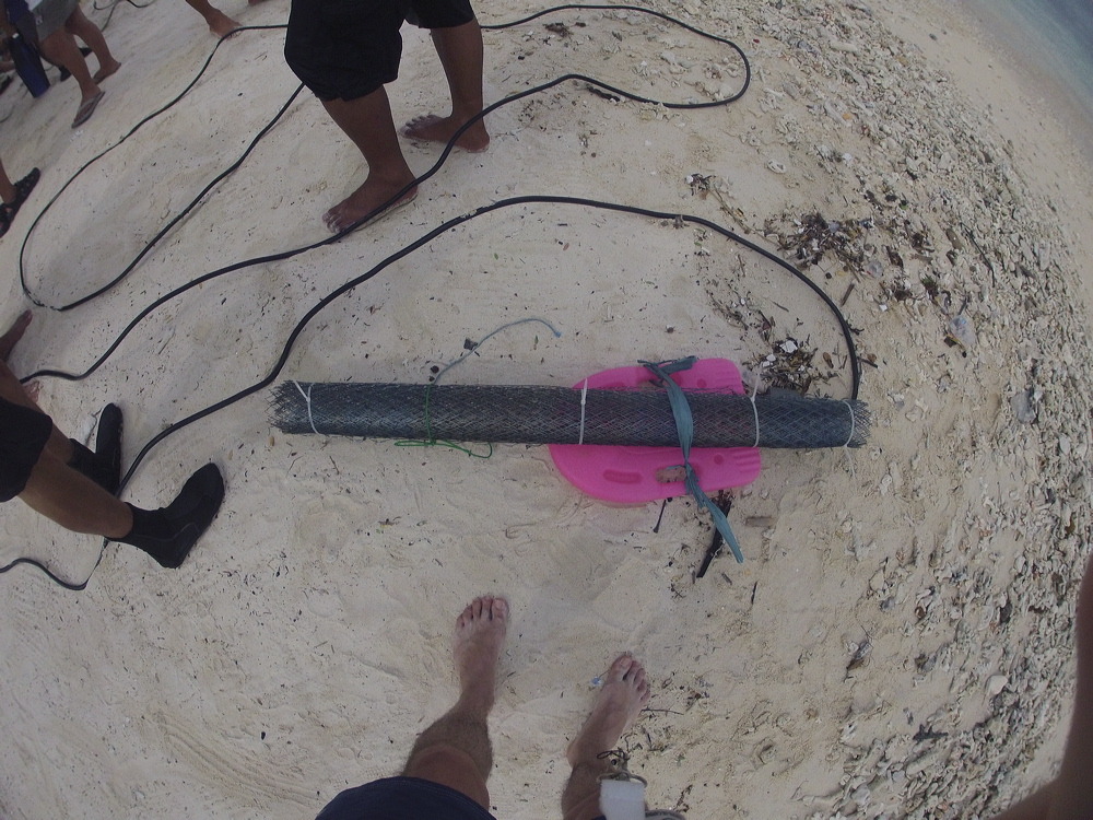 Pick up the table and the chair on the beach, bring them by boat, immerse, find the good place, connect, attach corals on it, having fun with Komang and Paulus… under the eyes of Thomas J. Goreau.