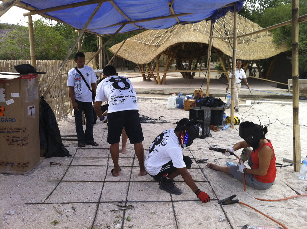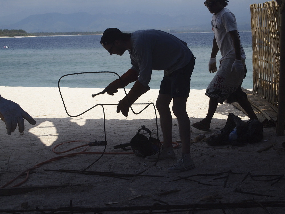 The 8th Biorock workshop is hands-on training for coral reef restoration by building reefs and growing new coral and reconstructing eroded beaches. For a week with us on Gili Trawangan you will study coral reefs and build new ones out of Biorock. You will help expand the 65 existing Biorock reefs around the Gili Islands. You will dive around the Gilis and carefully collect broken corals and bring them to the new Biorock reef. Finally, you will watch the fish settling in and observe how the coral fragments you collect amazingly cement onto the steel structures.