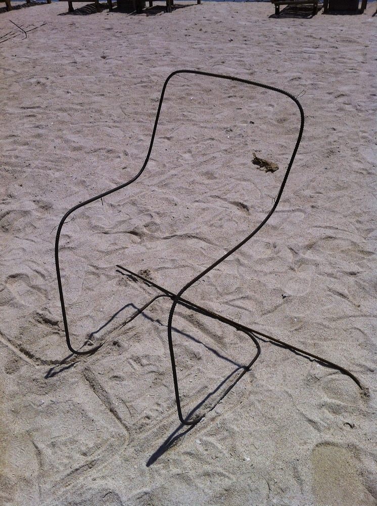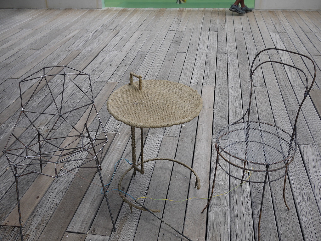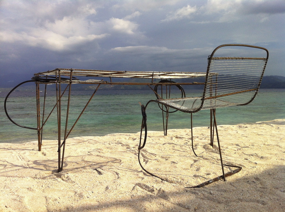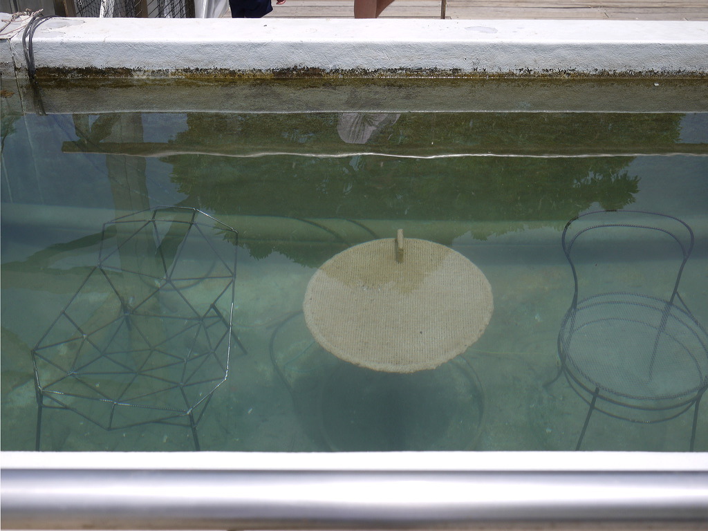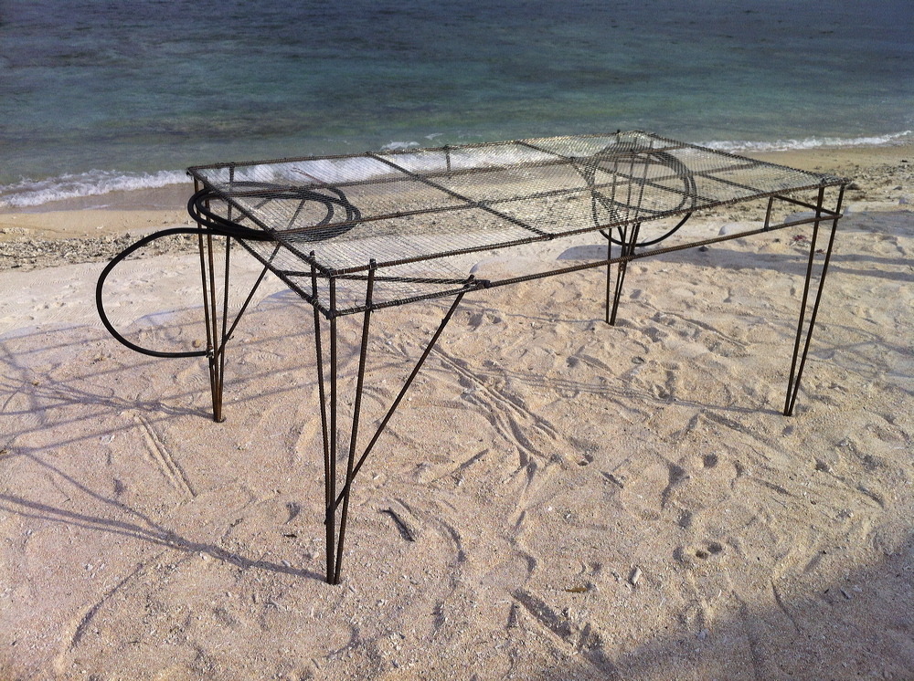 Mineral Accretion Furniture is an alternative system of production of furniture and objects, that can produce artificial reefs. It has been developed by architect and biologist Wolf Hilbertz (Symbiotic Process Laboratory / Texas University) to restore coral reefs and other kinds of ocean bottoms (fauna and flora). Can we produce objects with poor materials, elementary techniques, and in a direct relationship to the economic and environmental context?