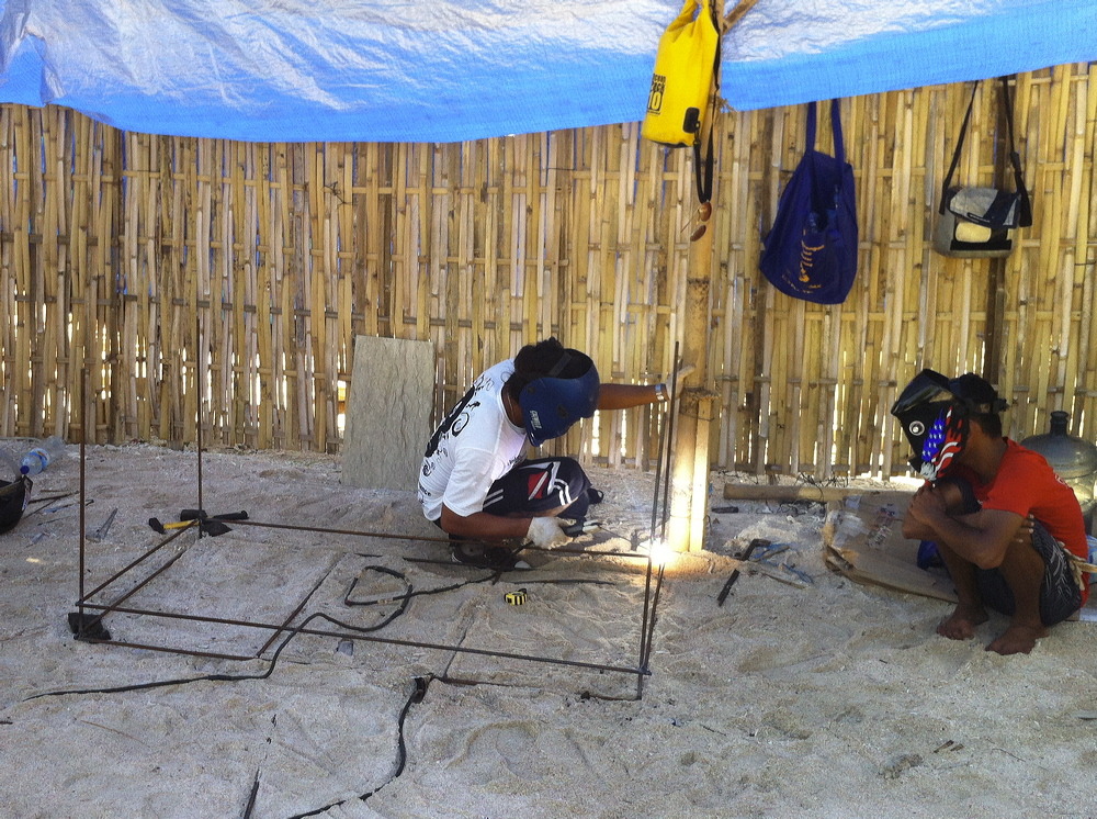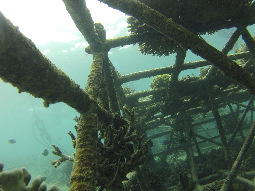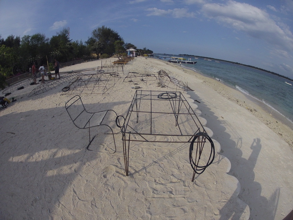 MINERAL ACCRETION FURNITURE After Biorock Workshop #6 / Still growing… News from Gili, 18 months later (may 2014), cloudy day…