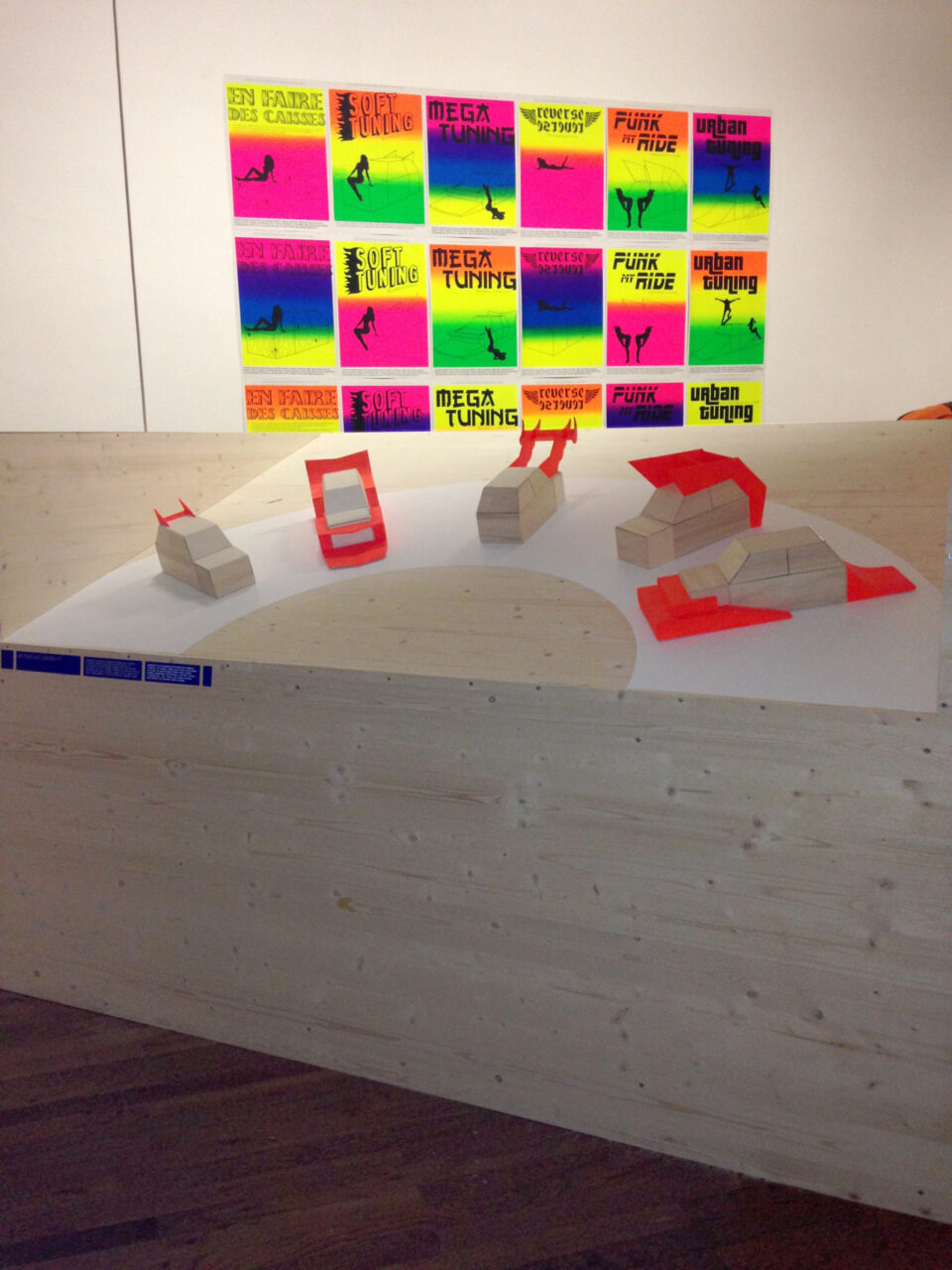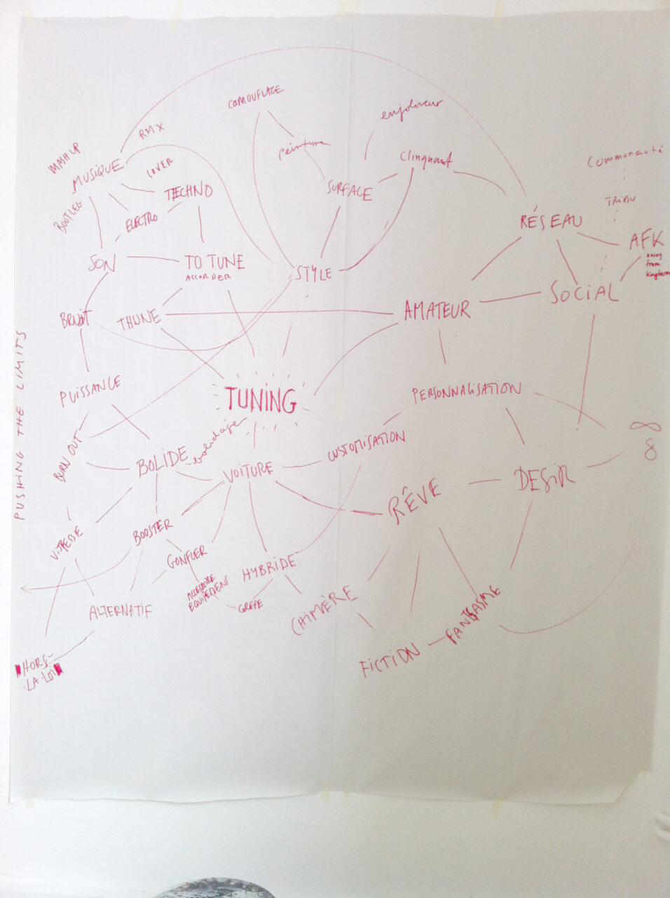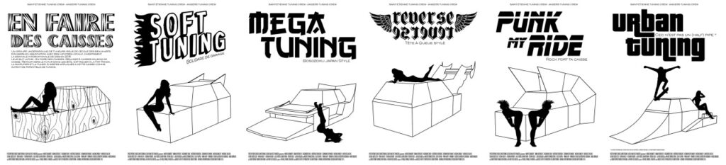 Ces voitures participeront de l’exposition “tuning”, (installation in situ, éléments signalétiques). Elle seront dessinées et conçues pendant ces trois jours à Angers et fabriquées lors d’un prochain workshop de cinq jours à Saint-Etienne en début de second semestre.
