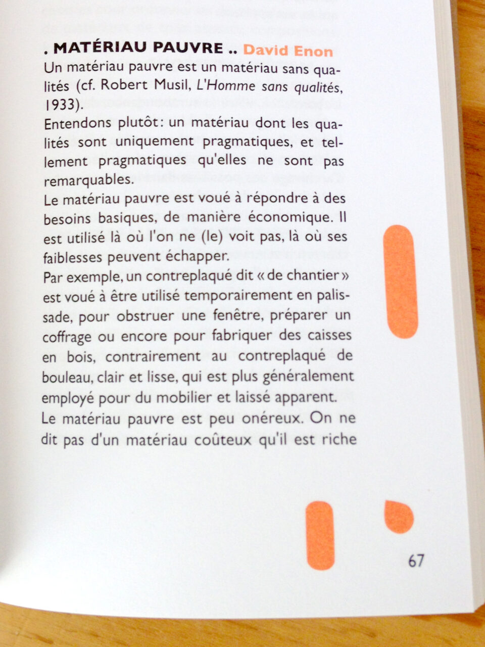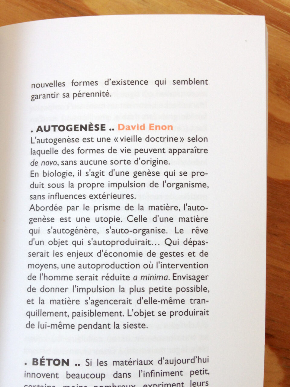 J’ai proposé : autogénèse, matériau pauvre et perte de matière.