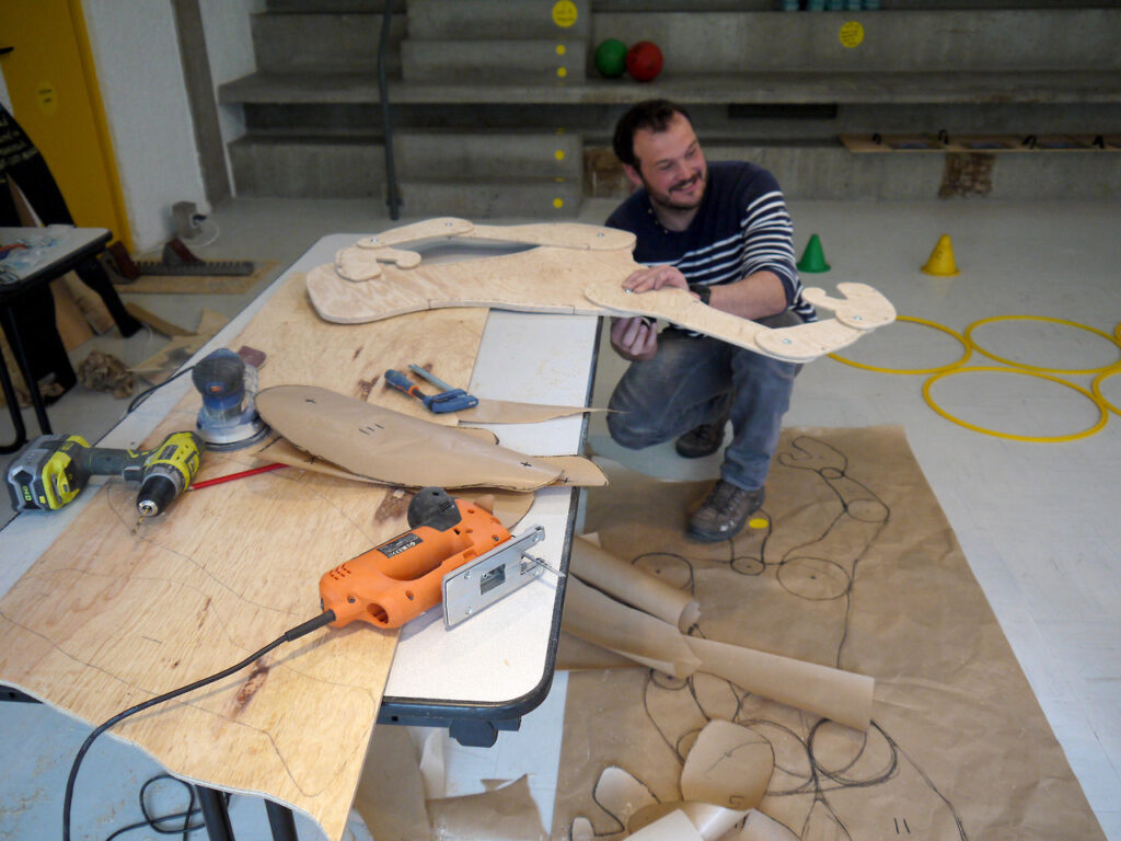 Objectif : construire des caisses (voitures) en “bois de caisse” (CP résineux type bâti pin) à l’échelle 1:1. Y appliquer des logiques remarquables des courants majeurs du tuning et représentatifs des modes de customisation.