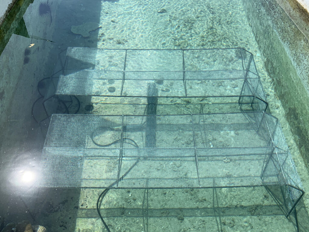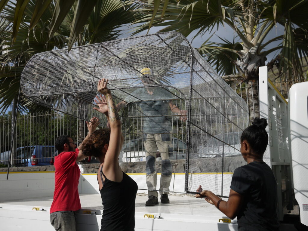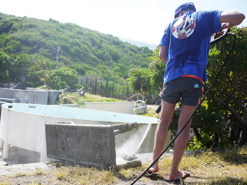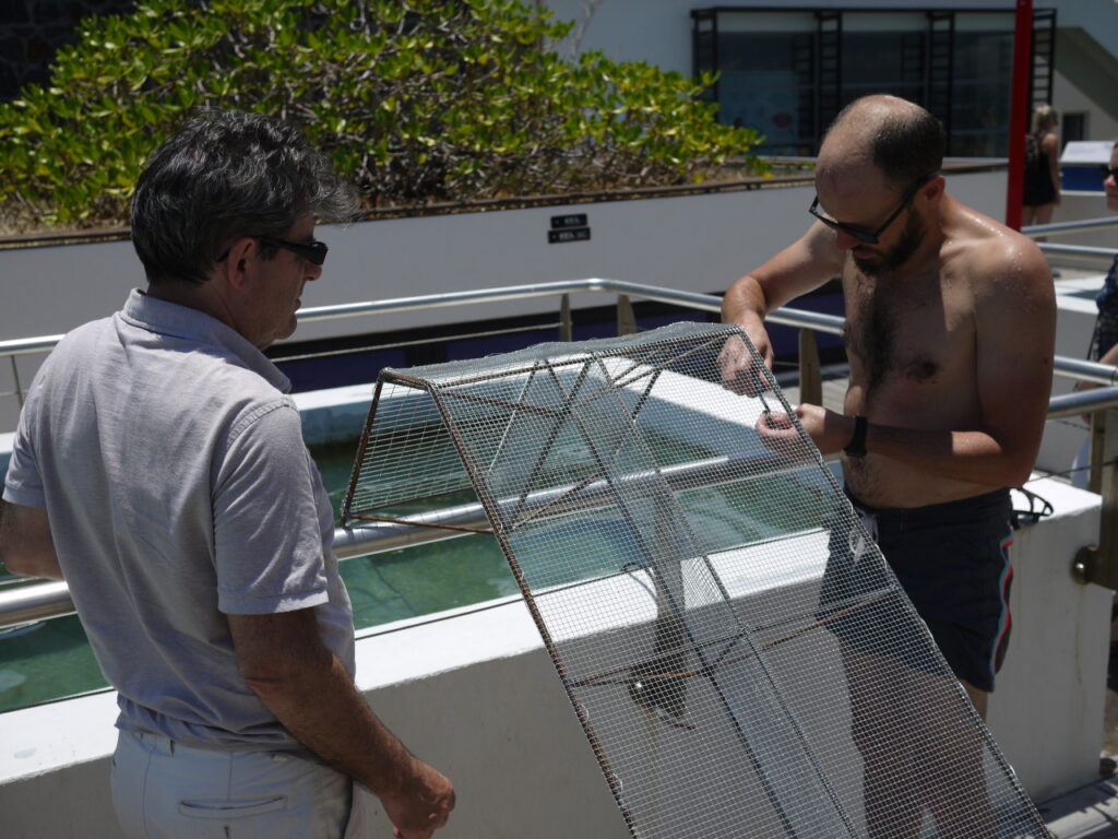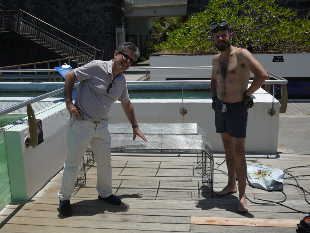 Immersion of the first prototype benches produced in the Kelonia basins for subsequent use around. A real In-situ production.