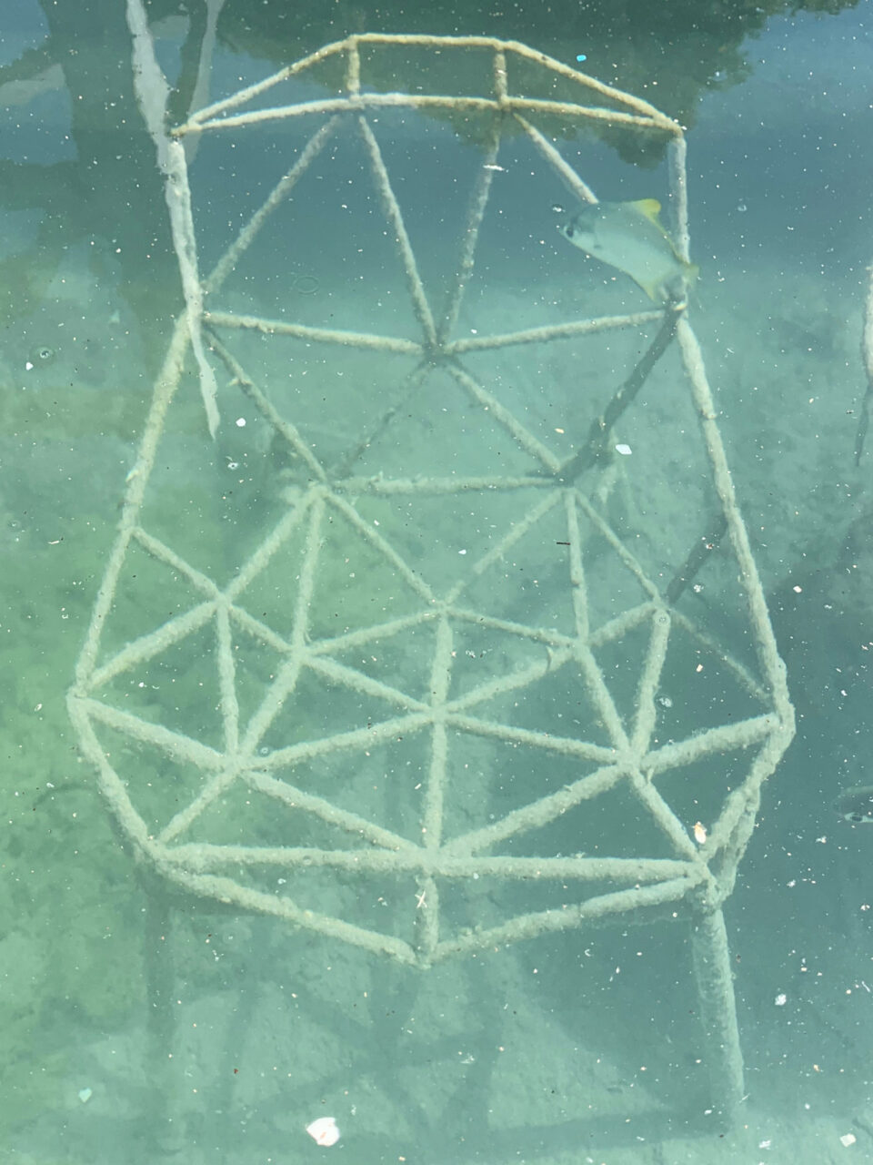 C’est un système alternatif de production qui utilise le mode de construction des récifs artificiels “Biorock” développé par l’architecte/biologiste Pr. Wolf Hilbertz (Symbiotic Process Laboratory) et le Biologiste Pr. Thomas J. Goreau (Global Coral Reef Alliance). Ce principe de récifs artificiels vise à aider au développement des récifs coralliens et participe de la préservation du littoral.