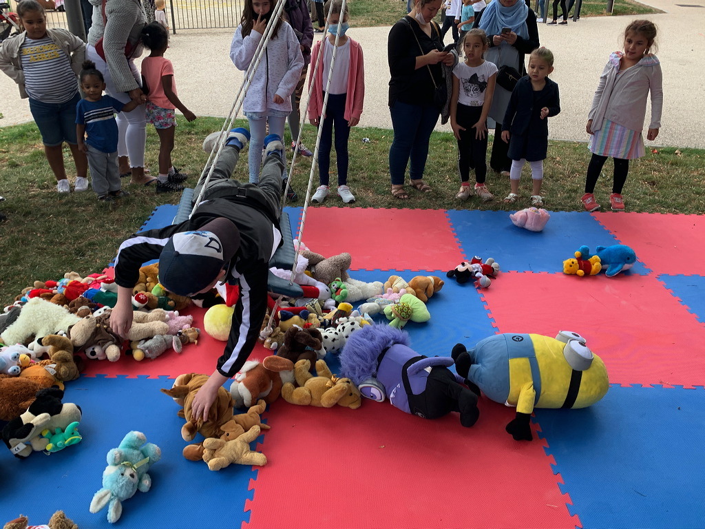 Manège cardio, chasse aux sons urbains, championnat de détricotage de bonnet, lancers de troncs, massages sonores, pince à peluches vivante…