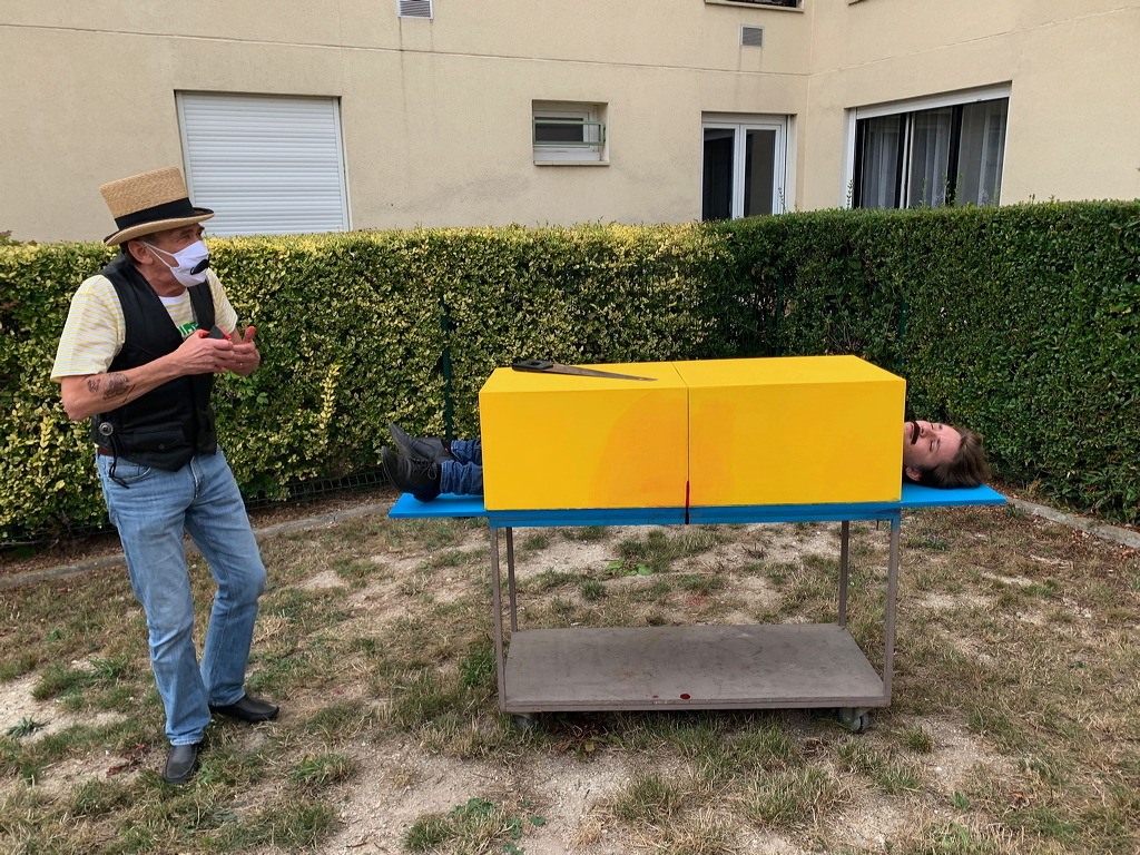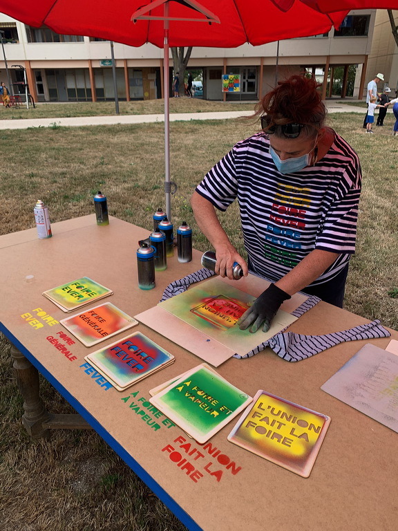 Pour cette foire, j’ai repris le flambeau sur les questions matérielles : scénographie, accessoires etc. L’enjeu était, avec Julie Desprairies et sa compagnie, d’accompagner les associations à créer leur attraction en essayant de produire le moins de choses possible pour limiter les déchets. La majeure partie des éléments fabriqués et achetés sont donnés aux associations à l’issue de la foire. La plupart des éléments sont empruntés au théâtre, aux écoles, à la maison de quartier, aux associations et autres institutions locales.