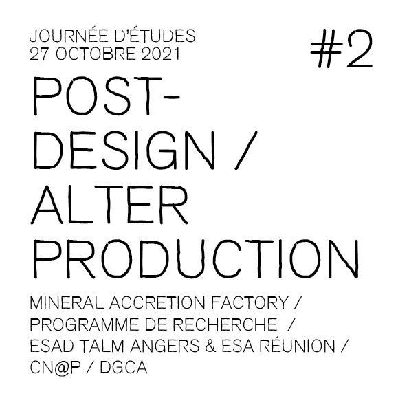 Ces journées d’étude font parties du programme de recherche Minéral Accretion Factory* hébergé par l’API Lab (Laboratoire Art – Paysage – Insularité) de l’ESAR – école supérieure d’art de La Réunion en partenariat avec l’ESAD TALM – école supérieure d’art et de design Tours – Angers – Le Mans et soutenu par la DGCA – direction générale de la création artistique. Elles se dérouleront en deux temps. Le premier temps aura lieu à L’ESAD TALM – Angers le 11 mars 2021 et le deuxième le 27 octobre 2021 à l’ESAR à la Réunion où le projet est actuellement développé.