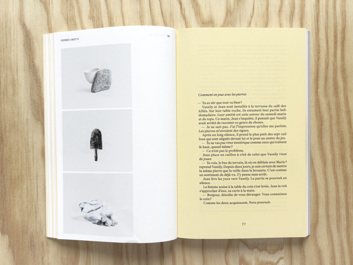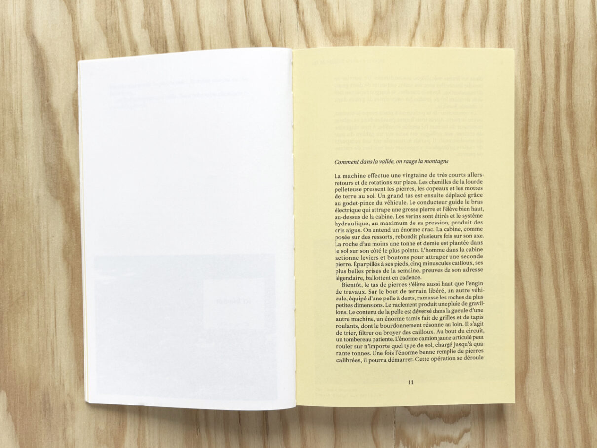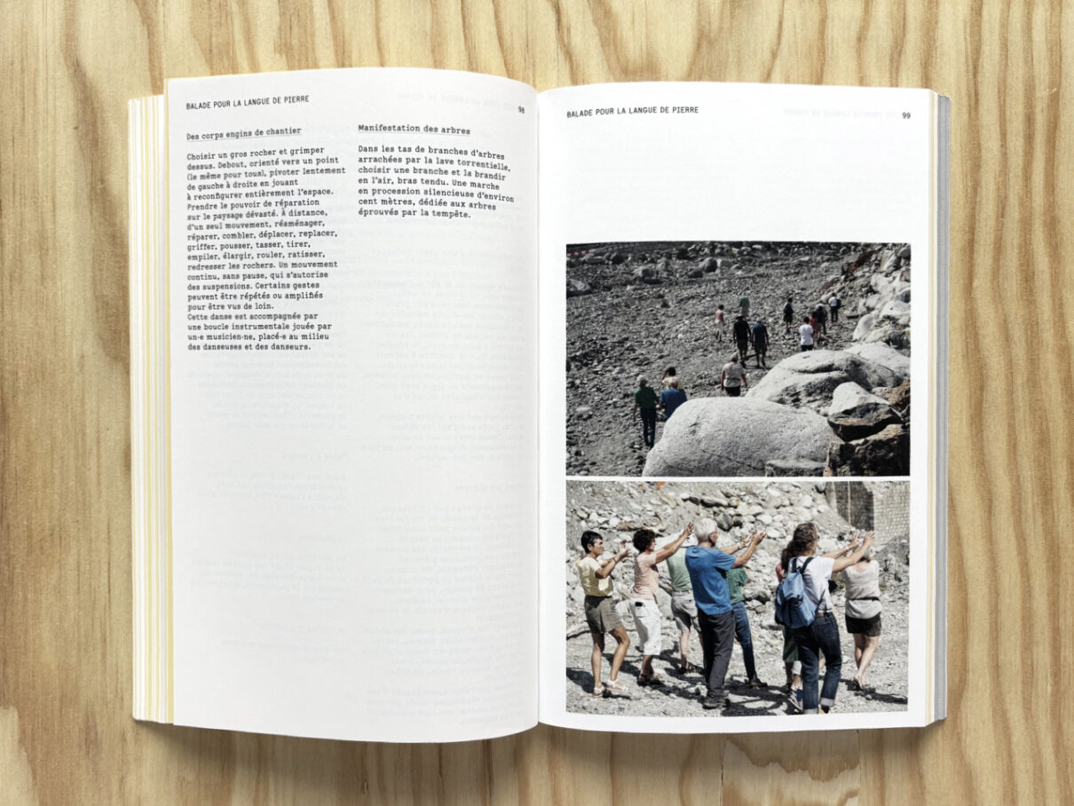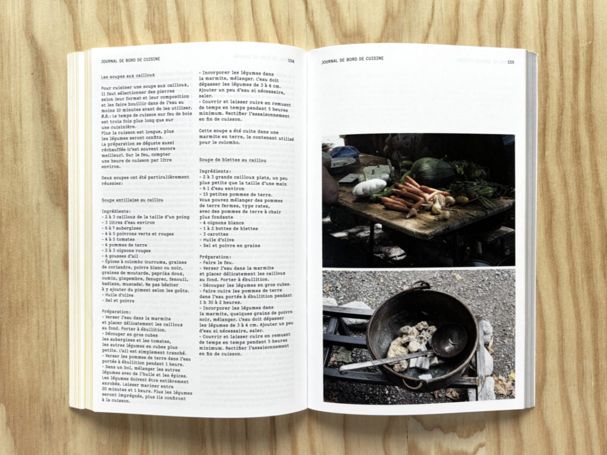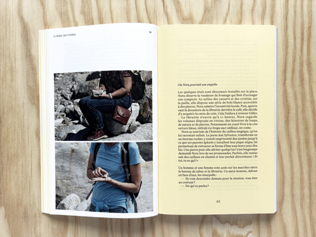 In October 2020, Storm Alex struck the Alpes-Maritimes region. Extreme weather conditions led to flooding and torrential mudslides in the Vésubie and Roya valleys. As part of the Ministry of Culture’s “Mondes nouveaux” program, novelist Colombe Boncenne, in collaboration with designer David Énon and five other artist-authors— sculptor Julien Berthier, choreographer Julie Desprairies, musician Charles Dubois, architect Laure Dezeuze, and sociologist Livia Velpry, came to observe and share their perspectives on this event and its aftermath. After two residencies in Saint-Martin-Vésubie, they created and produced a three-day event together, drawing inspiration from the traditional folk tale “La soupe aux cailloux,” which served as the foundation for a collectively written fiction. The main plot unfolds in Saint-Martin-Vésubie and serves to describe the disaster, the landscape that followed, its impermanence, its perpetual motion, and its transient reality. Yet this reality includes—without directly naming them—the artistic works created during the event, presenting them as phenomena that the local population cannot explain. Evidence, or pieces of evidence—texts, drawings, photographs—are interspersed throughout the text.