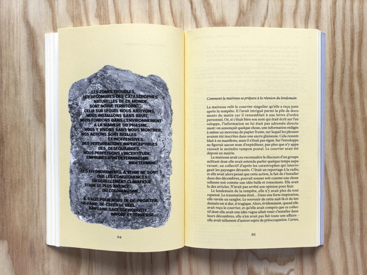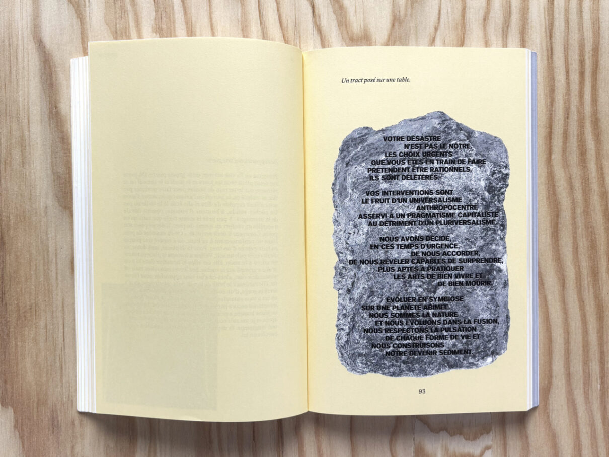 L’objet est protéiforme, il est porté par l’idée que l’on peut interroger le réel – même tragique – par le biais de la fiction et offrir la possibilité à l’imaginaire de s’insuffler là où il semble ne plus avoir de prise. Il s’agit également de dépasser la logique de l’événementiel et d’inscrire une expérience artistique tout aussi singulière qu’éphémère dans un temps plus long, celui du livre, de la réflexivité.