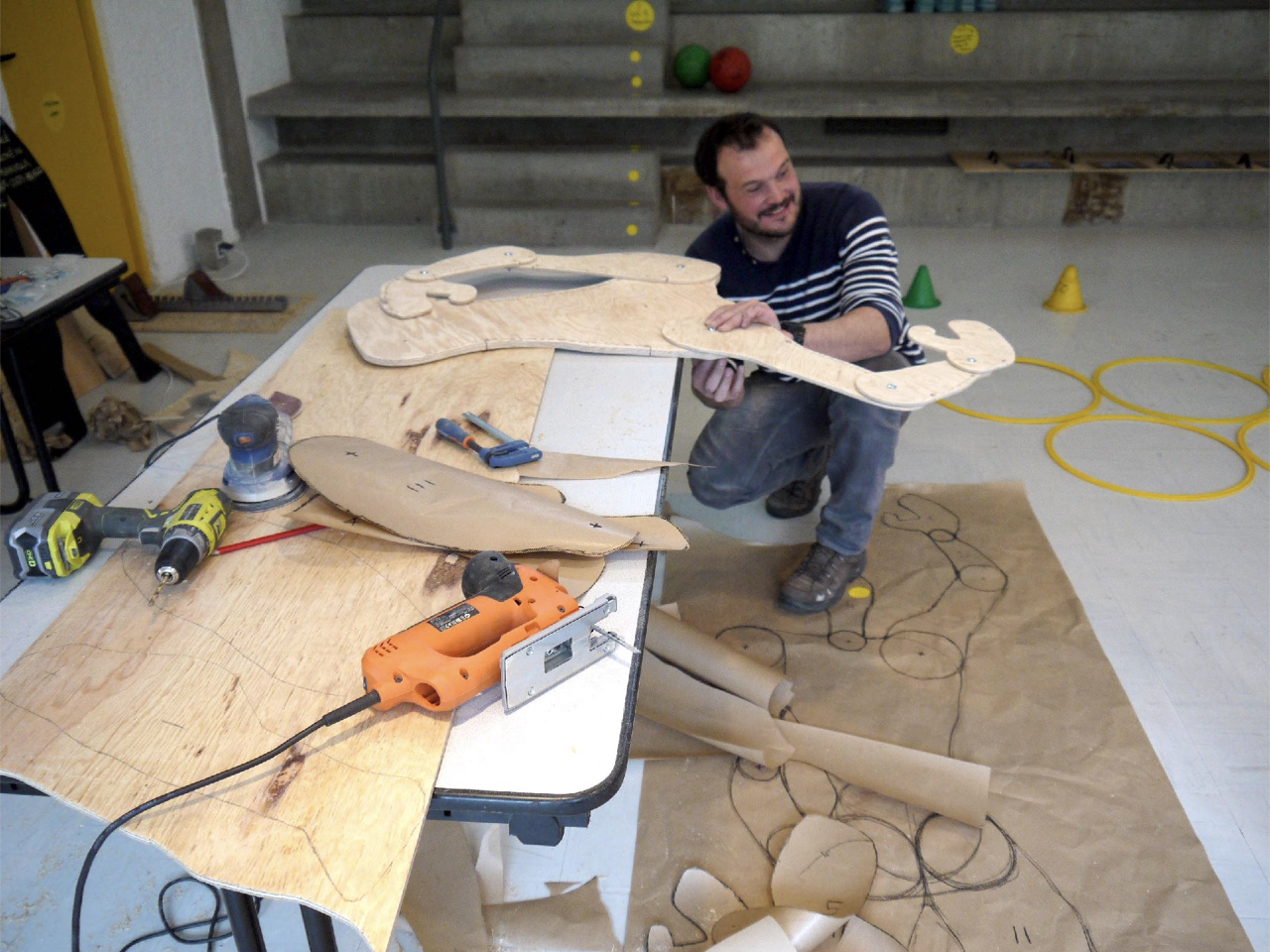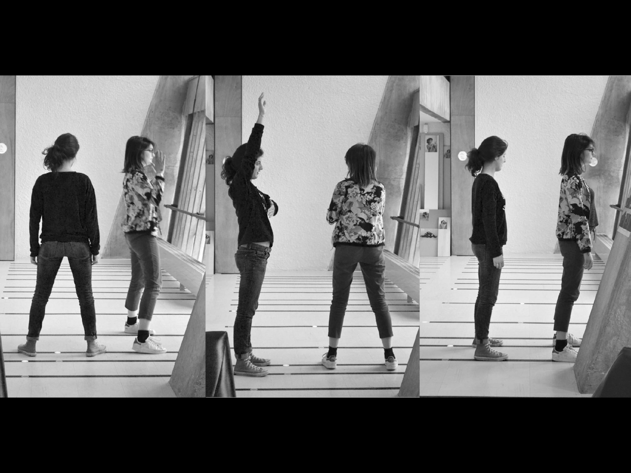 From September 2016 to March 2017, the Site Le Corbusier in Firminy will host their regular presence; they will collect dancer and designer attitudes from the people who work there; from this material, they will fabricate a hybrid half-choreographic, half-designed project; they will share with the public of the Saint-Etienne 2017 International Design Biennial an experience of danced design or designed dance. In addition to the site workers, students from the École Supérieure des Beaux-Arts d’Angers are involved in this project.