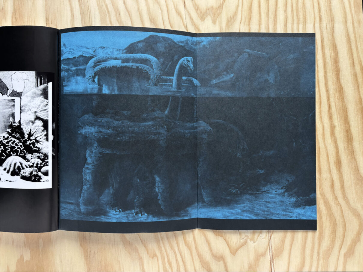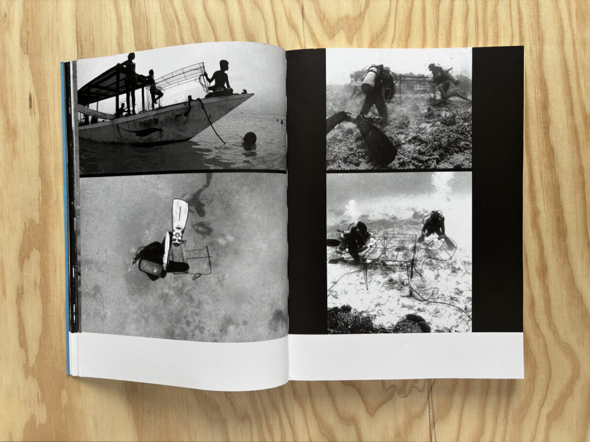 Jean-Marc Ballée’s original creative work offers a reinterpretation and a graphic and visual reappropriation of the research. Drawing on the designer’s archive (over 1,500 documents) and shared visual and cultural references (cinematic and popular culture, maritime and underwater imagery, etc.), Jean-Marc Ballée reimagines the narrative of the project and its collaborations. He employs various techniques: collage and photomontage, visual appropriation, illustration, display typography, posters, etc.
