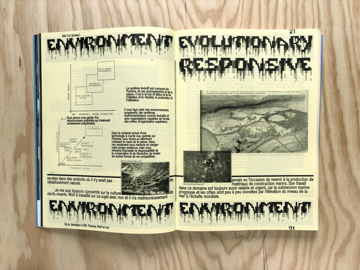 Le travail de création originale de Jean-Marc Ballée offre une relecture et une réappropriation graphique et visuelle de la recherche. En s’appuyant sur l’archive du designer (plus de 1500 documents) et les références visuelles et culturelles partagées (cultures cinématographique et populaire, imaginaires marins et sous-marins…) Jean-Marc Ballée redéploye une narration du projet et des collaborations. Il convoque diverses pratiques : collage et photomontage, détournement visuel, illustration, typographies display, affiche etc.
