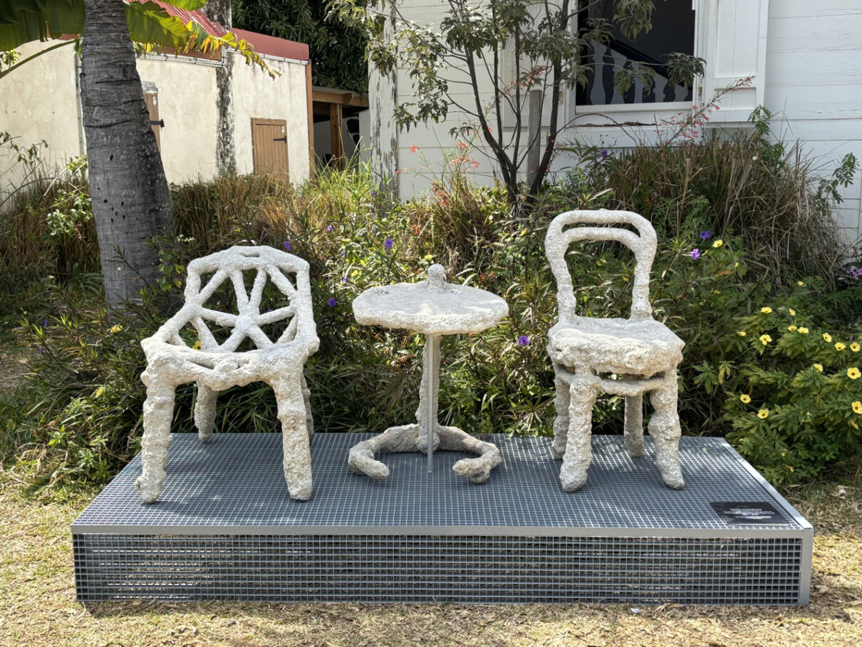 On the occasion of France Design Week 2025, the Frac Réunion is inaugurating the installation in its gardens of pieces by designer David Énon. Stemming from the Mineral Accretion Factory research project and produced in Saint-Leu in the Kelonia basins, they were recently acquired by the CNAP (National Center for Visual Arts) and are on permanent loan to Réunion.
