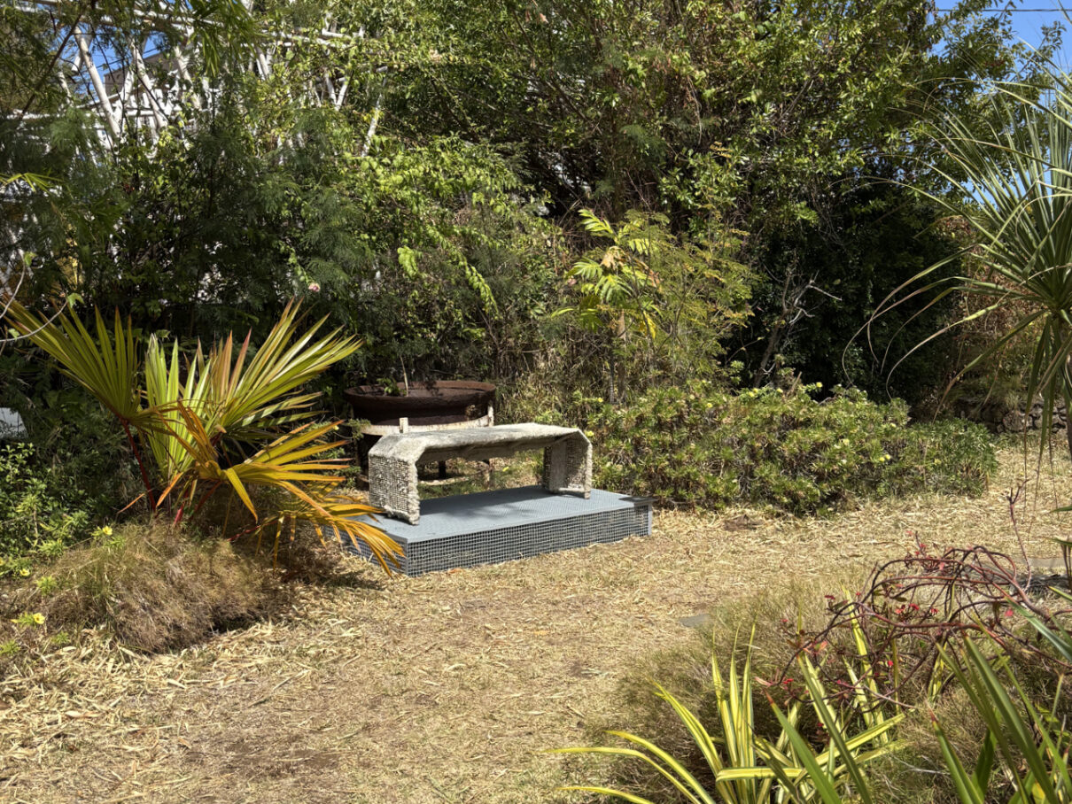 It marked the official handover of the contemporary fossils and the Kélonia bench prototype—a series of pieces from the Mineral Accretion Factory—to the CNAP, their permanent deposit at FRAC Réunion, and their exhibition in the Jardin Créole of the Maison Dussac, which houses the FRAC. It also served as the launch of the book LOW /SLOW, Design et alterproduction situés.
