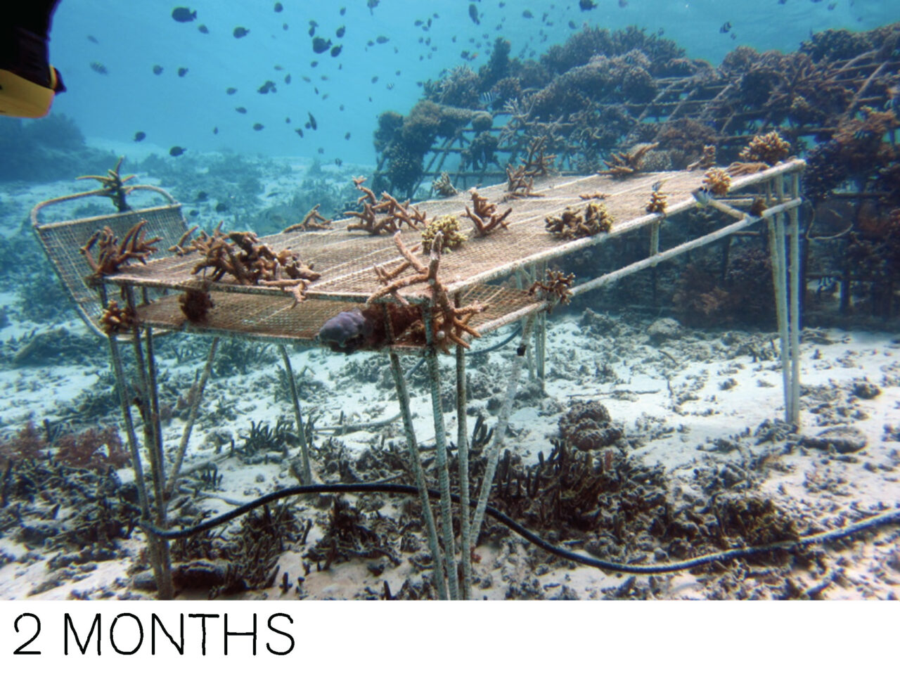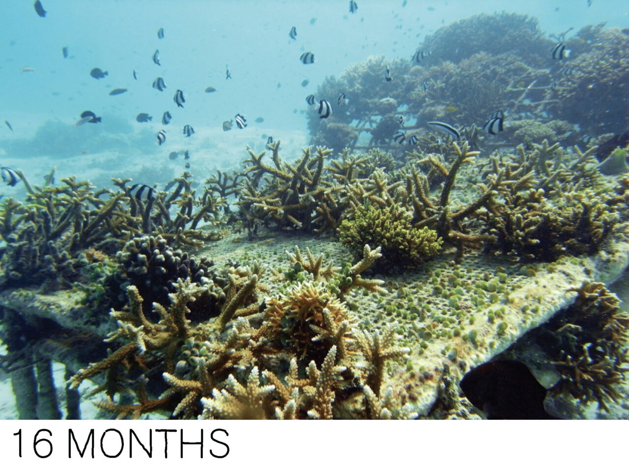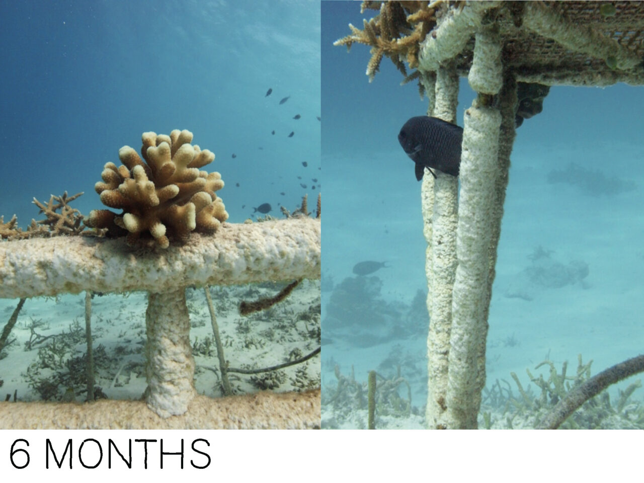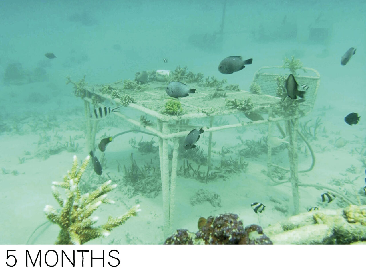 Grace au soutien du CN@P, le premier prototype a été mis en place en Novembre 2012 au large de l’île de Gili Trawangan (Indonésie). Le projet se développe actuellement à la Réunion dans le cadre du laboratoire A.P.I. (Art Paysage Insularité) de l’ESA Réunion. Les premières pièces en fabrication entreront dans les collections du CN@P dès leur sortie de l’eau.