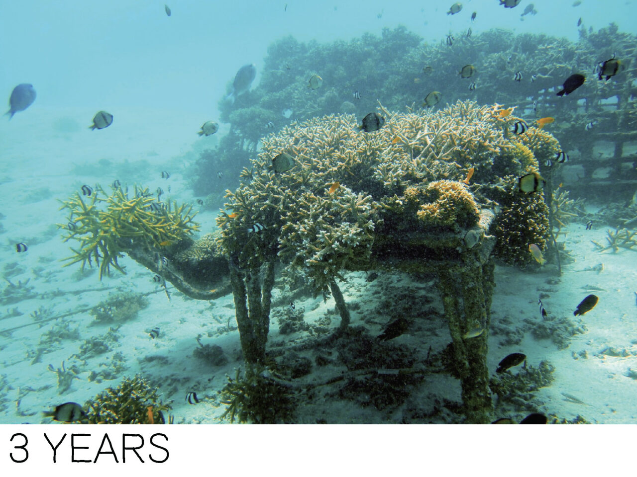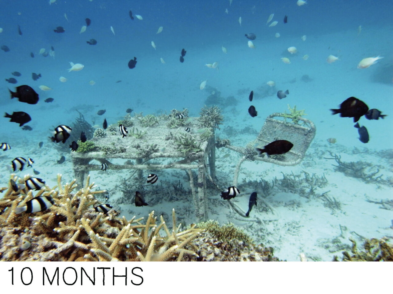 Thanks to support from CN@P, the first prototype was set up in November 2012 off the island of Gili Trawangan (Indonesia). The project is currently being developed on Reunion Island by the A.P.I. (Art Paysage Insularité) laboratory at ESA Reunion. The first pieces produced will be added to the CN@P collections as soon as they leave the water.