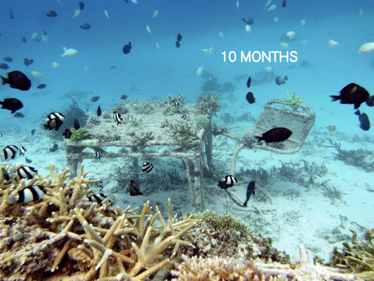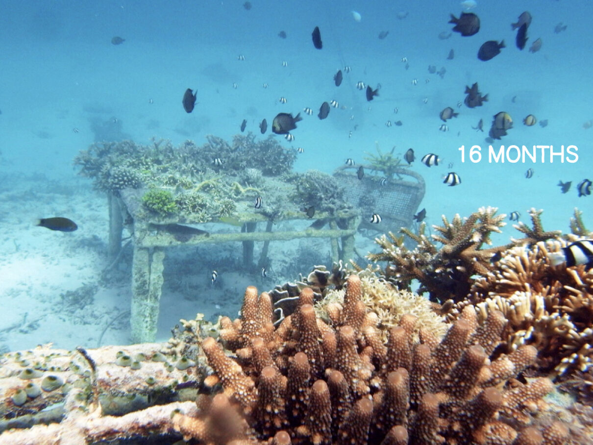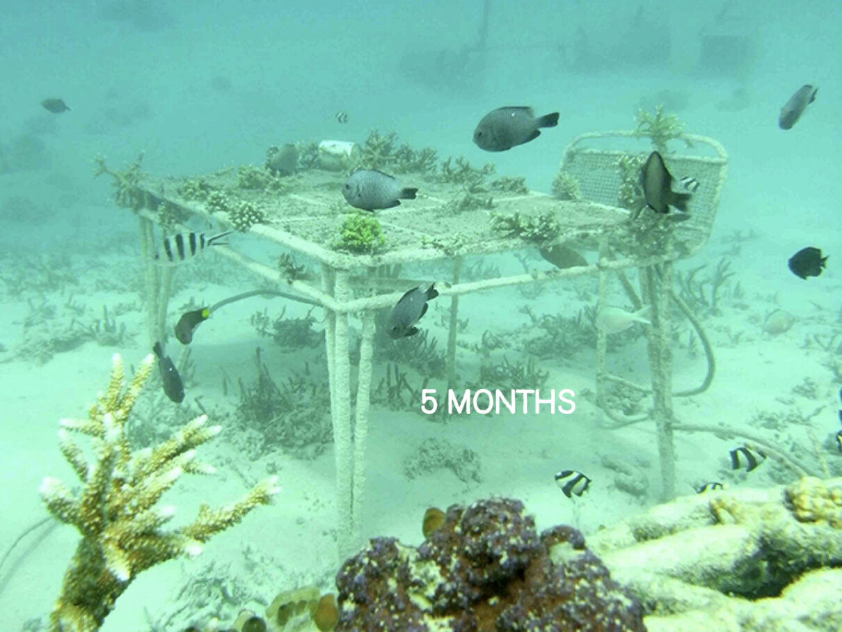 Thanks to support from CN@P, the first prototype was set up in November 2012 off the island of Gili Trawangan (Indonesia). The project is currently being developed on Reunion Island by the A.P.I. (Art Paysage Insularité) laboratory at ESA Reunion.