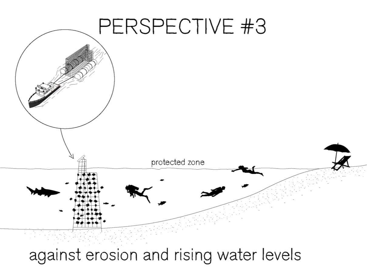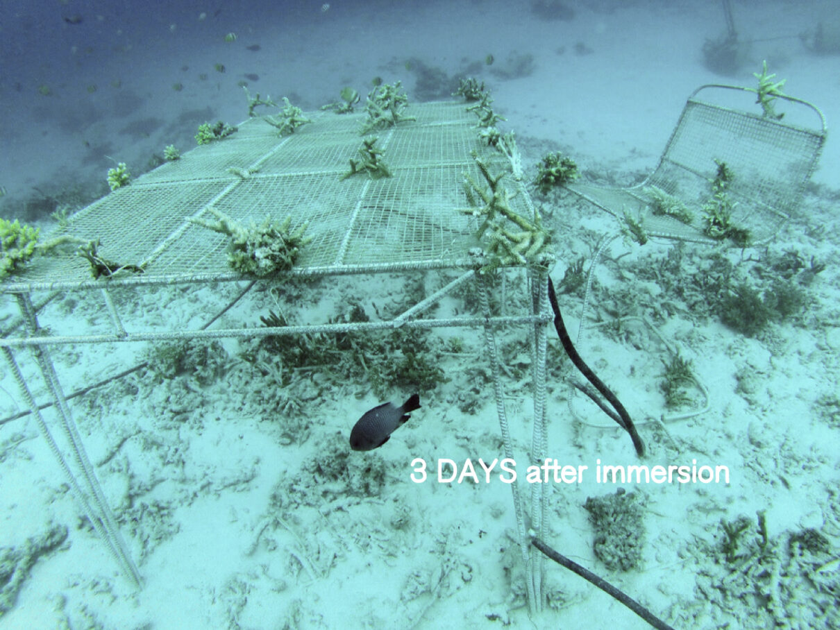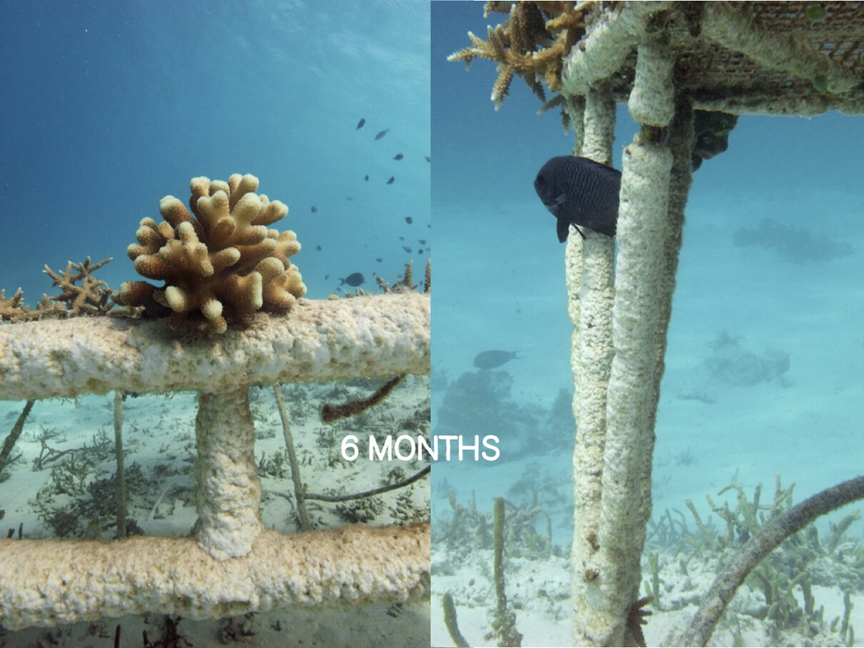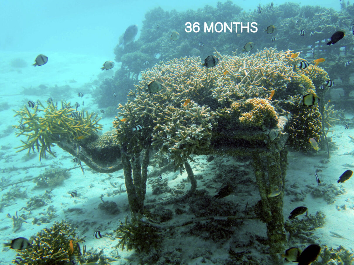 Thanks to support from CN@P, the first prototype was set up in November 2012 off the island of Gili Trawangan (Indonesia). The project is currently being developed on Reunion Island by the A.P.I. (Art Paysage Insularité) laboratory at ESA Reunion.