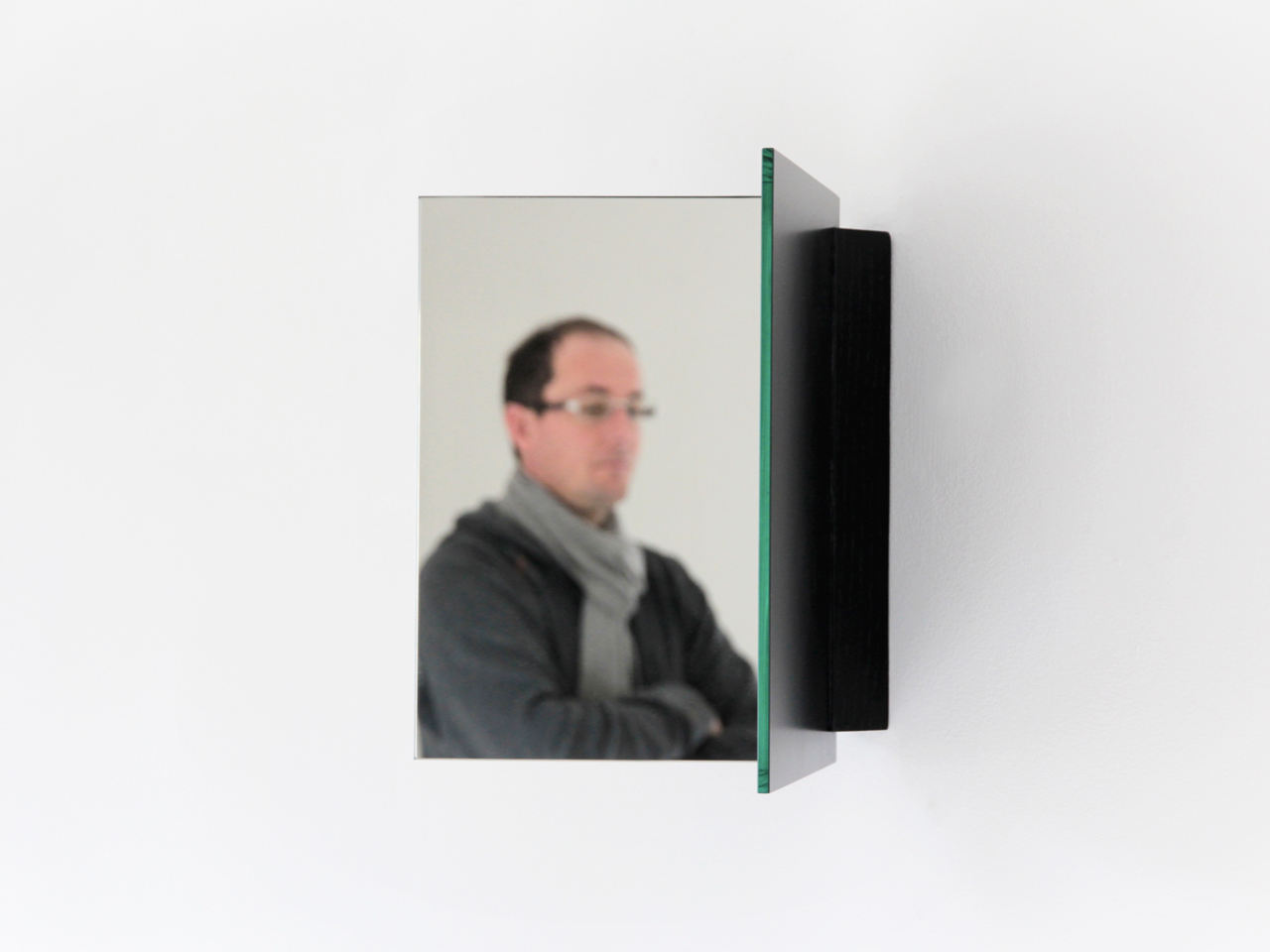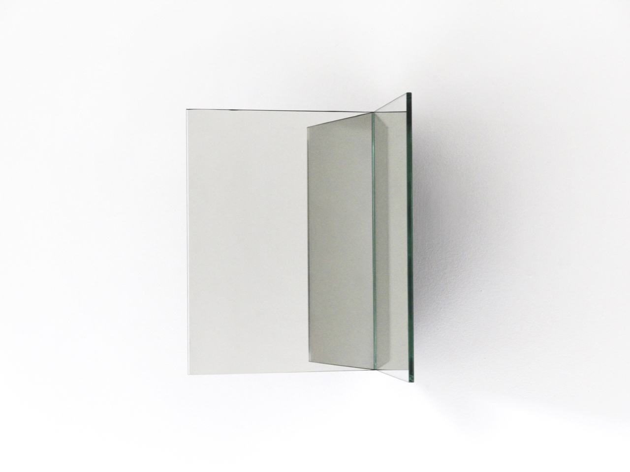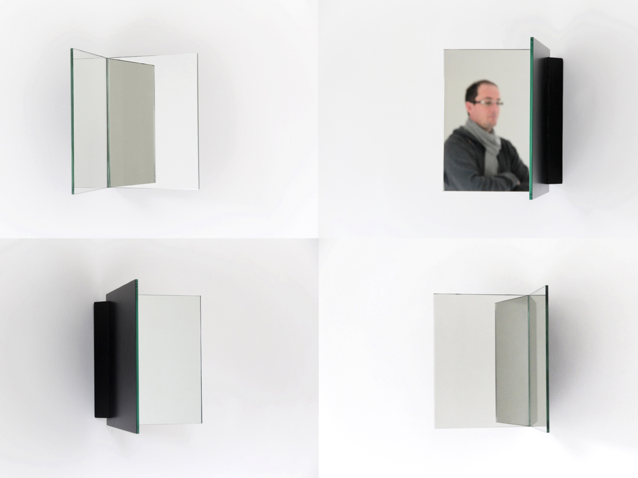 By folding a mirror at an 85° angle, the mirror detaches itself from the wall and splits our image in two.