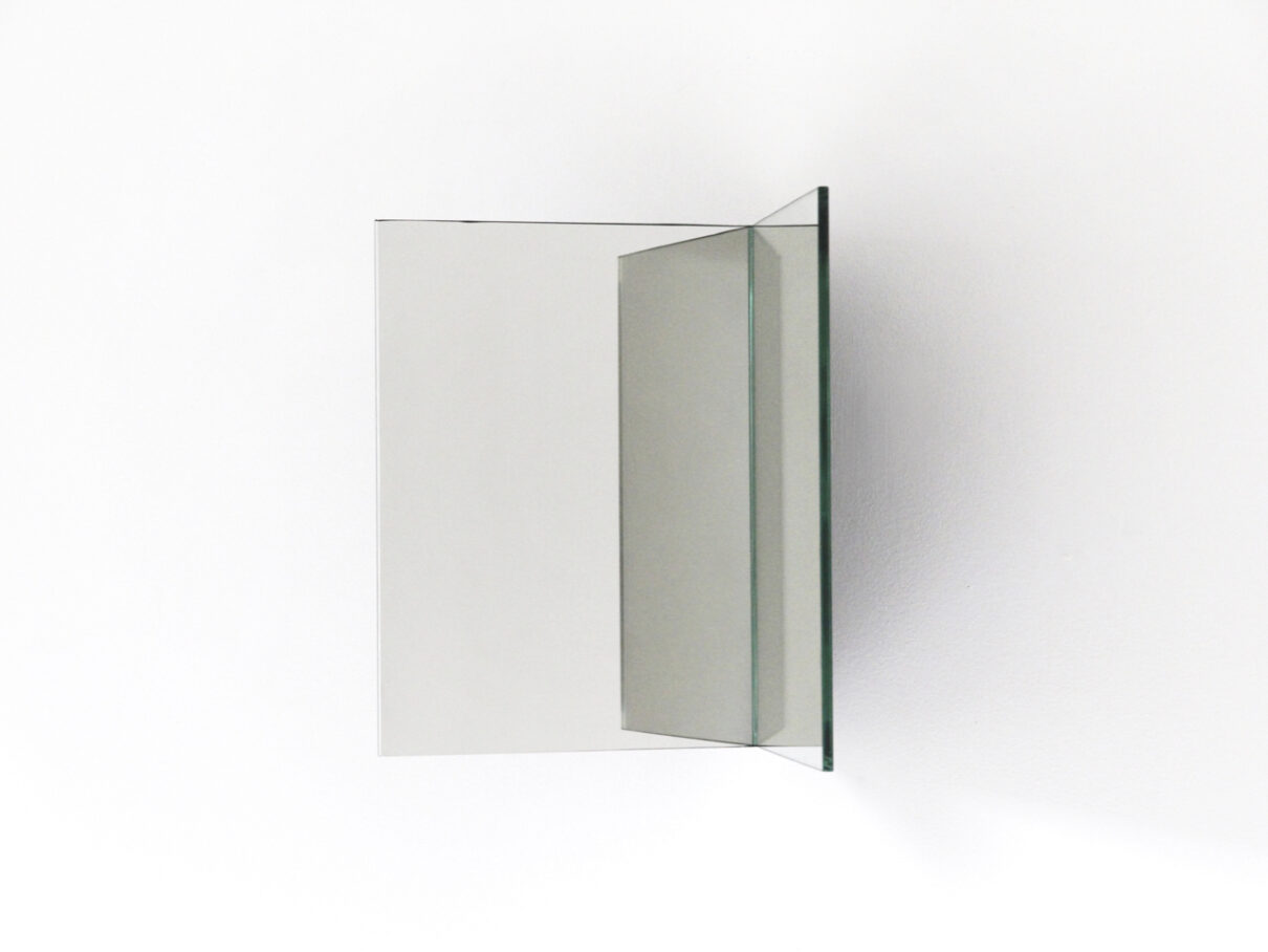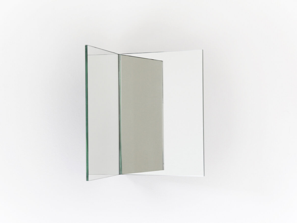 By folding a mirror at an 85° angle, the mirror detaches itself from the wall and splits our image in two.