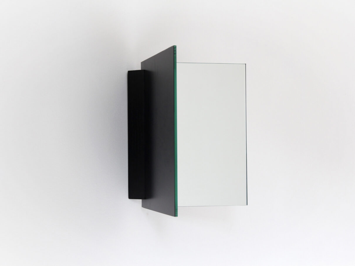 Mirror and black-stained beech. L. 31 x W. 20 x H. 31 cm