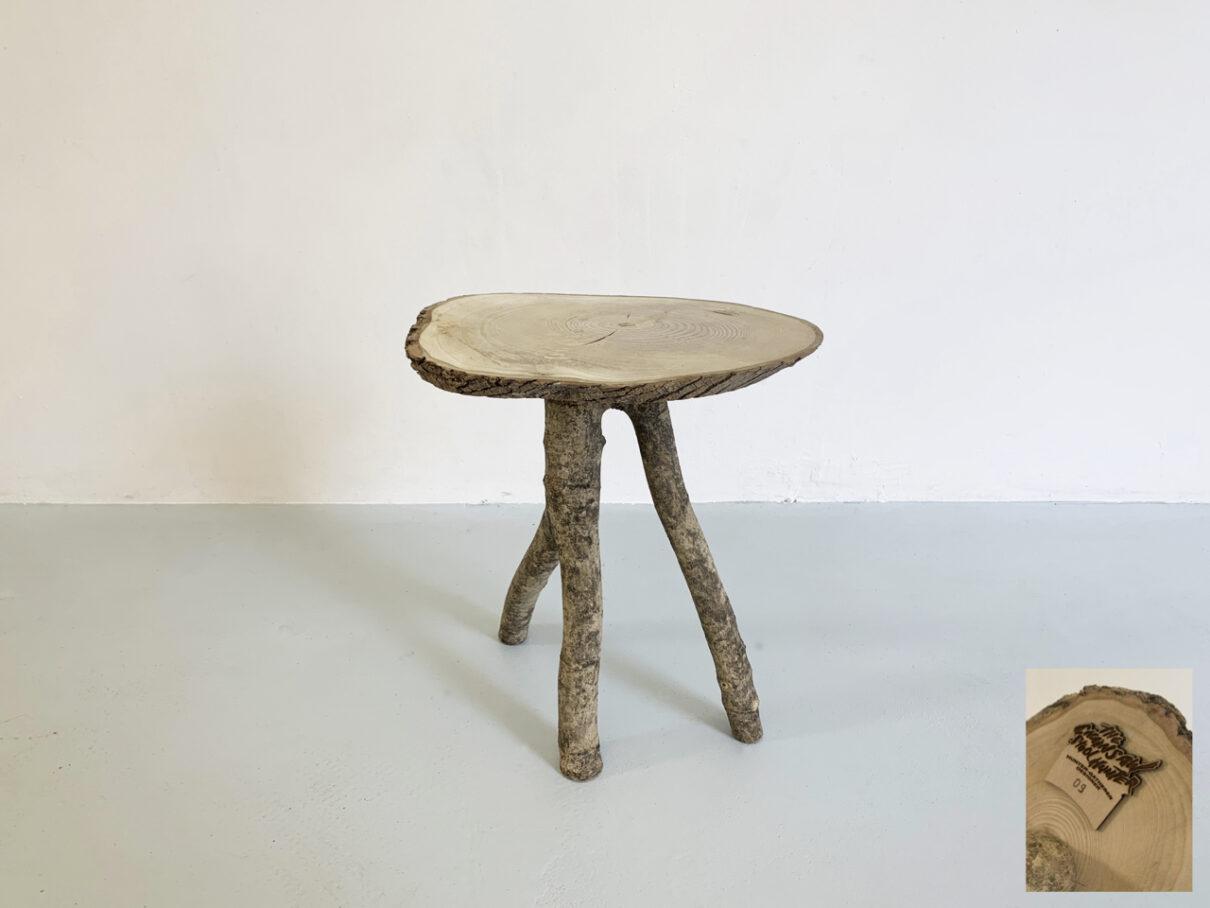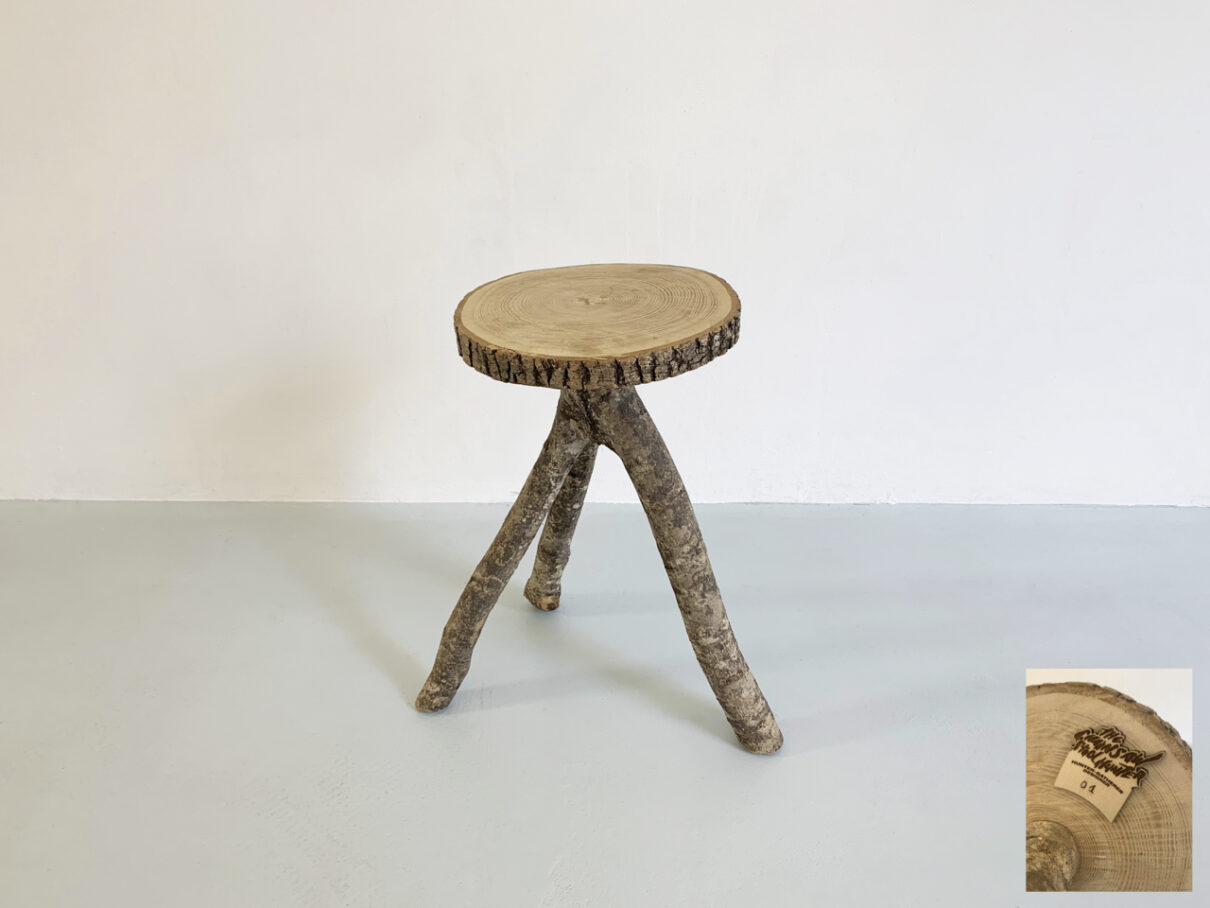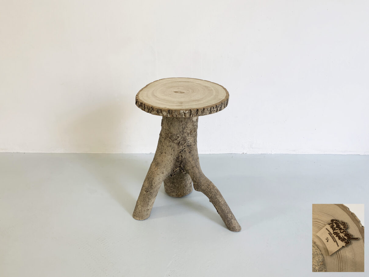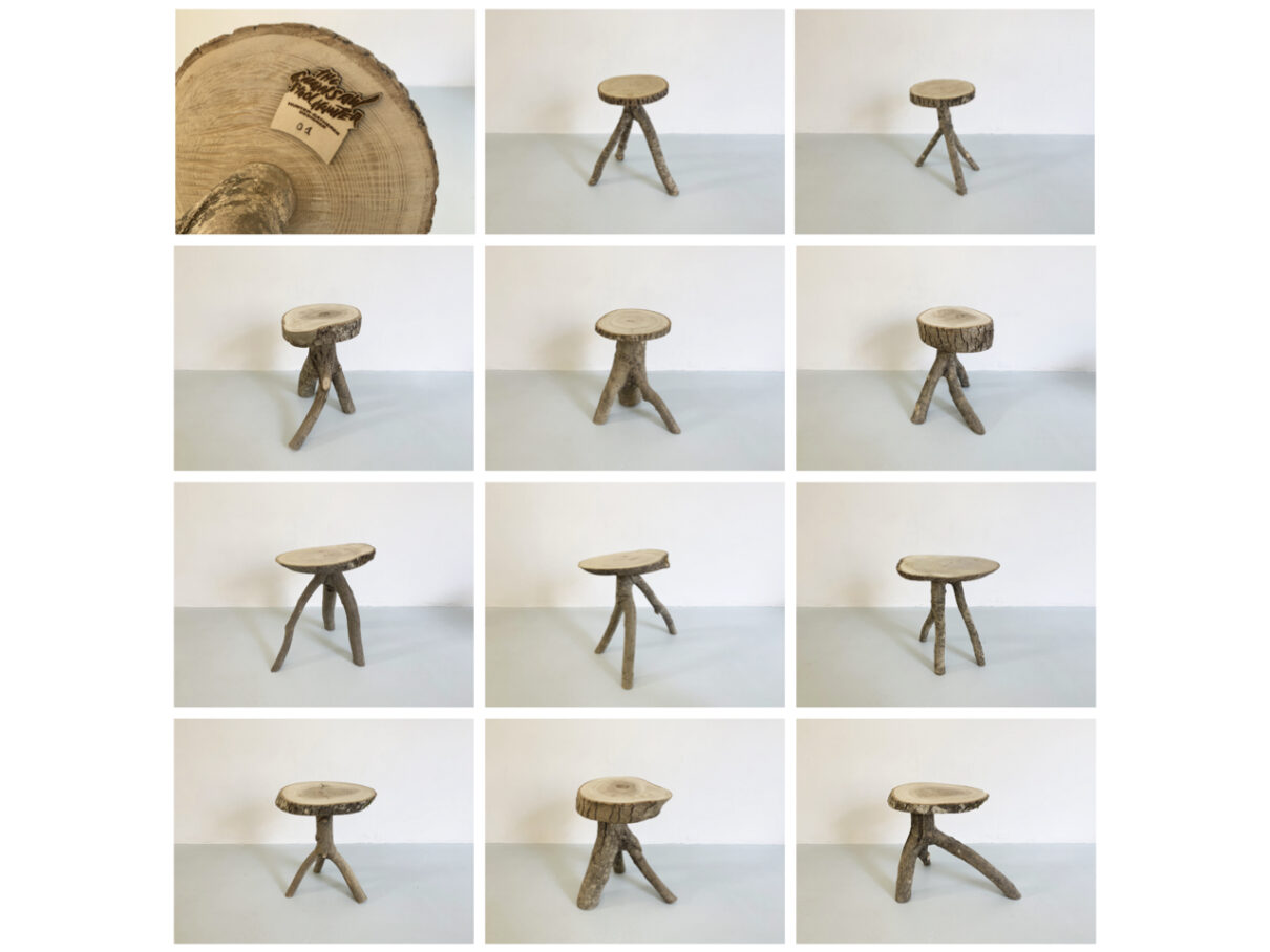 Les trépieds sont finalement travaillés un à un pour devenir meubles.